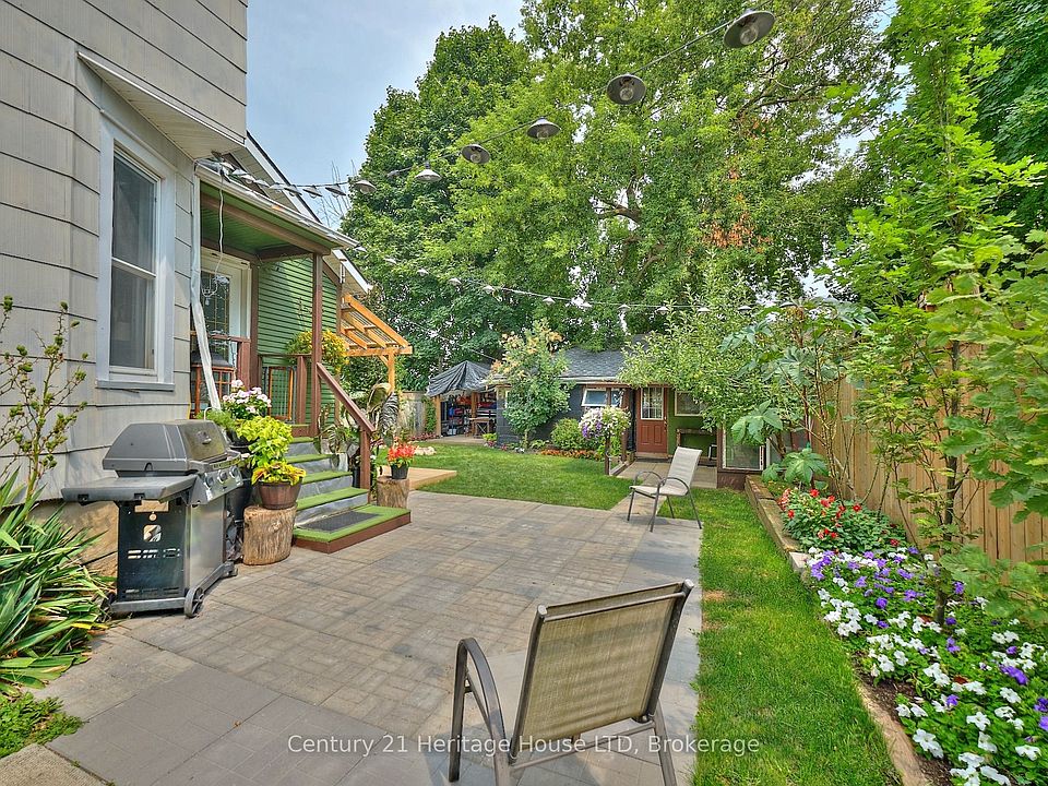 Fully fenced backyardMature treesUpdated landscapingSweeping gardensPatio stonesUpdated porchFresh grass