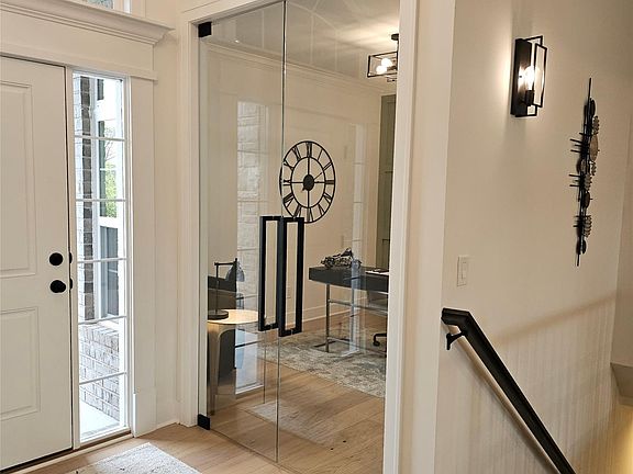 The heart of the home is the kitchen, featuring a double-deep island and a cozy nook that flows seamlessly into the great room, perfect for entertaining. The den, located just off the foyer, showcases an elegant accent wall, adding a stylish touch.