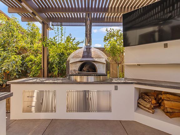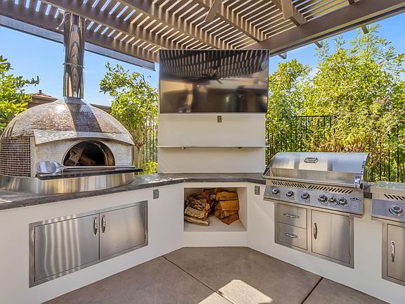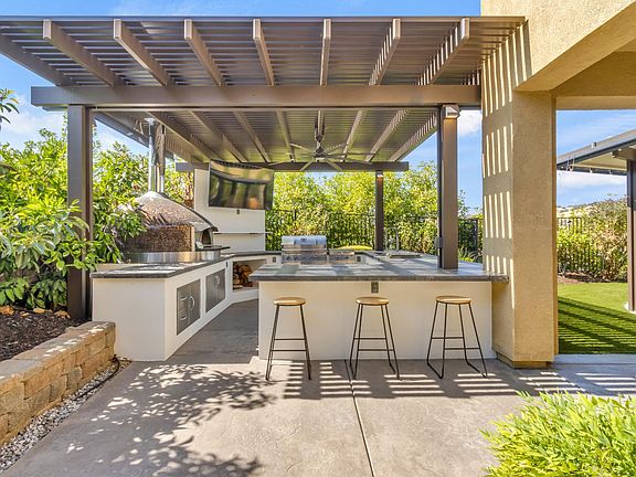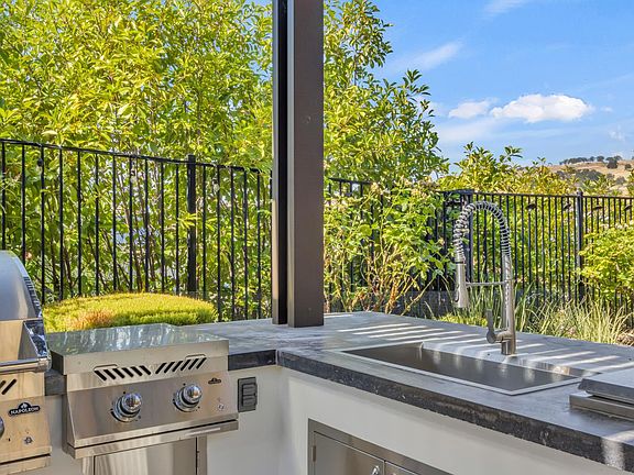 Exceptional Blackstone residence offering 3,740 SF of living space with 5 bedrooms and 4 full baths, situated on a private .17-acre homesite, 3-CAR GARAGE & 10+KW OWNED SOLAR SYSTEM - Thoughtfully designed with a main-level bed/bath, spacious loft, and an expansive primary retreat featuring a spa-inspired bath, massive walk-in closet, and private balcony with elevated views of the Sacramento skyline. The gourmet kitchen impresses with Monogram appliances, granite counters, subway tile backsplash, and a walk-in pantry. Step outside to an entertainer's dream: a custom outdoor living experience with an artisan Piombo Forno pizza oven, built-in TV, professional-grade appliances, and a lush fruiting orchard with 12 varietalsplum, pluot, lemon, lime, mandarin, orange, olive, and three types of avocado. Energy-efficient living with two fully owned solar systems producing a net-zero energy bill. Additional highlights include a 3-car garage, designer finishes, and resort-style access to Blackstone's exclusive amenities: heated pools, indoor/outdoor gyms, parks, trails, and walkable proximity to award-winning Valley View Charter K-8.