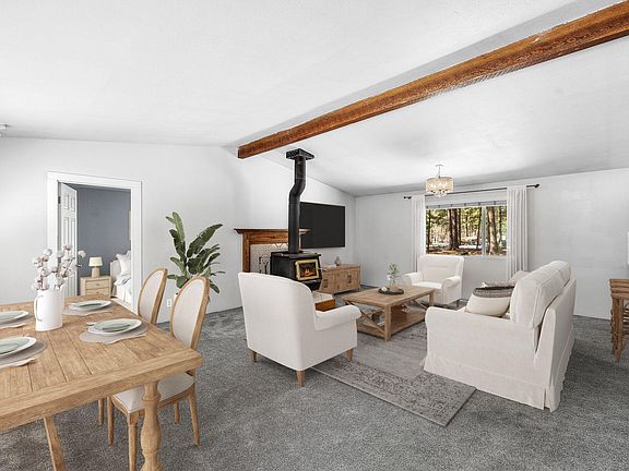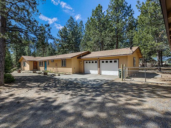 Surrounded by mature ponderosa pines, this home offers great value just minutes from downtown La Pine and close to Wickiup Reservoir. The 3-bedroom, 1.5-bath home features many updates, a versatile layout, forced air heat, air conditioning, and a wood-burning stove for those cold nights. In addition to the attached two-car garage, there's a detached two-car garage with extra storage. The circular driveway and low-maintenance yard provide plenty of space for parking and projects, and there's even a chicken coop out back. Recent improvements include a new well in 2023.
