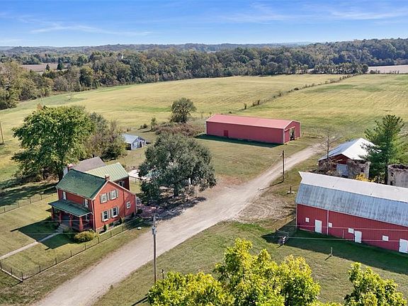 Quintessential farmstead in the sought-after Franklin County R-II School District! Step into timeless country living with this beautifully preserved 2-story brick home, originally built in the 1880s. Set on over 33 picturesque acres, this property blends classic character with modern comfort offering an ideal retreat just an hour west of St. Louis. The main level welcomes you with a side-entry foyer featuring ceramic tile, a spacious office or study with rich hardwood floors, a cozy great room anchored by a wood-burning masonry fireplace, a formal dining room, a warm and inviting eat-in kitchen with exposed brick, and a light and bright sunroom that captures peaceful views of the surrounding countryside. Up the elegant staircase, crafted by the renowned Kirkwood Stair Company, leads to 3 generously sized bedrooms, including a Primary suite, all showcasing original hardwood floors and abundant natural light. The property is equipped with a 200-amp service panel, private well, and septic system. A charming guest cottage with a woodstove offers excellent potential as a short-term rental, in-law suite, or private retreat. Enjoy summer days lounging by the inground pool with diving board or embrace your hobbies and passions with multiple outbuildings perfect for storage, livestock, or hobby farming. With scenic views in every direction, you’ll enjoy the peace of rural life without sacrificing convenience. Located just minutes from town and within a top-rated school district. Whether you're dreaming of a family homestead, a working farm, or an investment in future development, this one-of-a-kind property offers endless potential. Listed below a recent appraisal! Don't miss your chance to own this unique property!