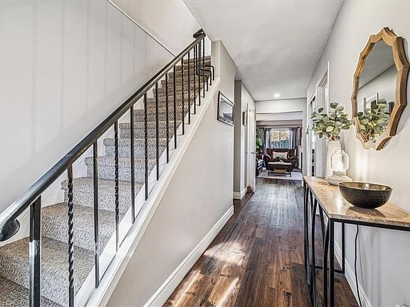 Experience modern comfort & everyday convenience in this bright, spacious end-unit townhouse nestled in Burlington's desirable Elizabeth Gardens. With 3 bedrooms, 2.5 baths & over 1,300 sq ft of thoughtfully updated living space, this home offers style, function & a warm sense of home. The upgraded kitchen features stainless steel appliances, a breakfast bar & a pantry, flowing into an inviting living room anchored bedrooms and additional bathroom provide ample space for family or guests. The finished basement offers a large rec room & bonus area ideal for a home gym or office. Enjoy a fully fenced backyard perfect for relaxing or entertaining, plus a private garage with convenient indoor access. With laminate flooring throughout, updated bathrooms, new washer/dryer & new furnace & AC (2021), this home is move-in ready. Walk to parks, schools, restaurants, grocery stores & new community centre, with easy access to Appleby GO, 403 & 407. A fantastic opportunity in a truly prime Burlington location.