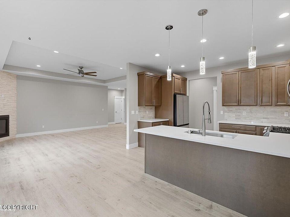 Better than new and ready to move in! Large ranch style home that is close to the conveniences of Wasilla, while being far enough to give excellent privacy. This property exhibits superb craftsmanship throughout and modern conveniences, such as in-floor heating, HRV, solid surface counters, high ceilings, LVP flooring, and a spacious 3-car garage. Additionally, this property sits on alevel lot and has a large fenced area that is ideal for pets. Tile used in bathrooms. Large pantry. Shorter driveway for easier snow removal in winter. Double sink vanities. Walk-in master shower. Oversized walk-in primary closet. Heavily treed lot.
