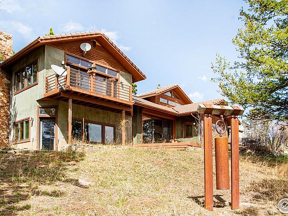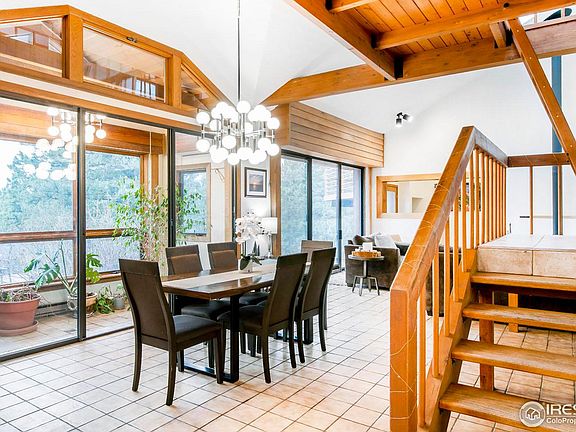 The dream of Colorado living unfolds in this cherished oasis nestled on a sweeping 47 acres. Vaulted ceilings crown an open living space with clerestory windows, earthy tile and exposed beams. Natural light flows into the dining area crowned by a new light fixture and further into a fully updated kitchen. Indoor-outdoor connectivity is afforded through sliding glass doors in the living area. At-home working is a pleasure in a vast office space grounded by a stone fireplace and surrounded by built-in shelving. Situated beneath vaulted ceilings, the primary suite is a haven all its own with a corner fireplace, generous views and private balcony access through glass doors. An en-suite bathroom is a spa-like escape with a soaking tub and two separate vanities. Retreat to an elevated loft accessible by a ladder and enjoy the natural light from multiple windows and a skylight. Outside, residents are treated to a serene escape with generous deck space and acres of private, wooded resplendence, just steps from nature trails. A short 10 minute drive to downtown Boulder, this desirable location is perfect for the outdoor enthusiast.