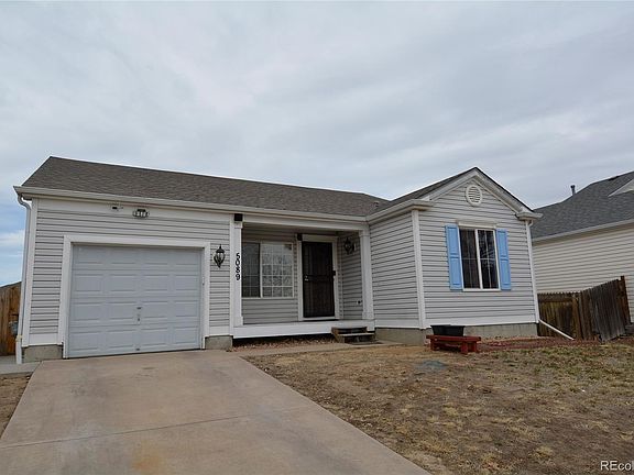 Super clean, bright, and charming ranch style home in the lovely Parkfield neighborhood. This 1,164 immaculate square foot home has 3-Bedrooms and 2-full bathrooms. The large primary suite has an ensuite full bathroom and a walk-in closet. The kitchen has stainless steel appliances, large cabinets, lots of counter space and a new disposal. This property also includes; laminate wood colored floors, beautiful designer tile floors, carpet, coat closet, open floor layout, no stairs, walk-in laundry room with shelves (washer included), and a new primary bathroom toilet. It also has a light and bright sunlit functionable floor plan with large eat-in kitchen area and ceiling fans throughout. Enjoy entertaining/living in the fenced in backyard with a newer 16 X 16 concrete covered patio and a covered front porch. This backyard is a gardeners dream with 8 garden beds. The trampoline can be included, or the sellers will remove whichever you would like. The composition/shingle roof was replaced in August 2021, newer central air conditioning and new windows! Don’t forget the extra long one-car garage with extra shelving. Near Denver International Airport, Pena Blvd, I-70, shopping, and restaurants. Only 15 minutes to the gorgeous Colorado Mountains with tons of hiking trails. Hurry, this immaculate turnkey property will not last.