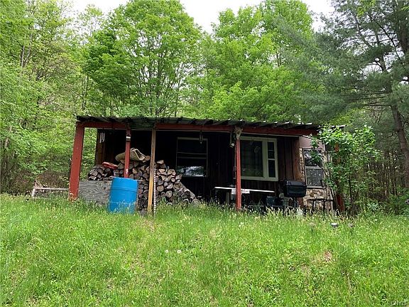 Well-built 2 bedroom cabin nestled in the middle of 5 acres. Cabin has a wood burning stove and propane heat. Large open dining and kitchen area that leads off into 2 separate bedrooms. Electric is at the road also backup generator hookups. The metal roof extends over patio. Just outside of the cabin is an outhouse. Nice driveway from the road to the cabin for easy access. Roughly 350 ft. of road frontage. The 5 acres is mostly wooded with some open areas. Whitetail deer sign throughout for great hunting. Area around the cabin is open for camping and family events but is secluded from the road. Behind the cabin is a small spring-fed pond. Cabin is located just outside the Town of Friendship. Approximately an hour and a half drive from Buffalo. Just down the road is over 1,300 acres of state land for hunting and hiking.