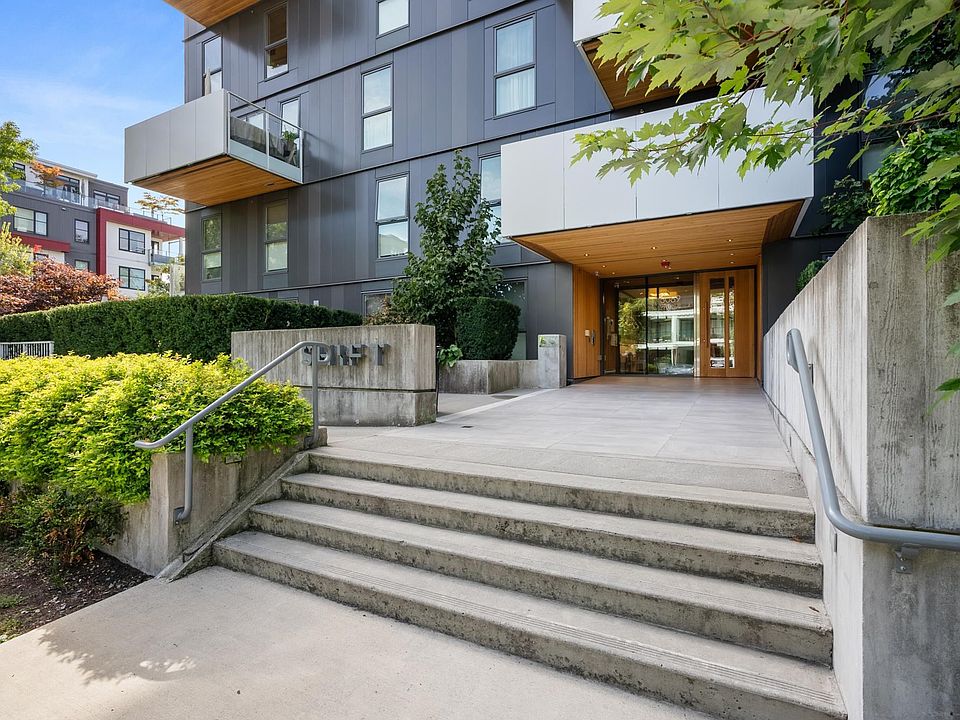 This stunning 820 sqft 2 bed + den, 2 bath contemporary home is located one block away from Main St. The sleek design incl. an accordion glass door that opens to 120 sq. ft. covered balcony, creating a seamless indoor-outdoor living experience. The spacious living room features a custom millwork electric fireplace, upgraded Lutron lighting, kitchen boasts an integrated MONOGRAM appliance package, premium gas range, XL fridge & quartz countertops. The 2nd bedroom incl. custom millwork, perfect for a home office or guest room. Large den offers custom organizers, incl. wine racking. Luxurious finishes incl. floor-to-ceiling bathroom tiles, wide plank hardwood floors, heated ensuite floors, and EV charging. You'll have endless options for shopping and dining. QE & Riley Park are steps away!