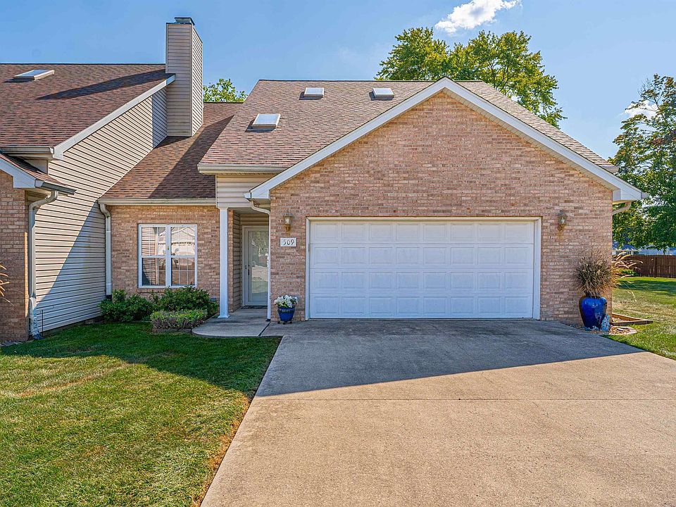 Sensational 3 bedroom, 2.5 bath one owner brick/vinyl sided story and a half attached single family in a quiet cul-de-sac! Priced to sell! Situated on three lots totaling .52 acre, this choice residential dwelling offers ample space both inside as well as outside. Seeking low maintenance? The $140.00/month association dues here cover lawn maintenance as well as snow removal. Step inside and be welcomed on the main floor by a lovely living room host to a corner woodburning fireplace, open staircase, and overhead skylight, convenient laundry/mudroom area, tiled formal dining room with a rear facing exterior access point, convenient tiled hall half bath, efficient equipped tiled kitchen, and a gracious 17X14 primary suite with ample floor space, private adjacent tiled bath with a double vanity, and a 7X7 walk-in closet. Upstairs, you will find a 20X11 family room with two overhead skylights, a full hall tiled bath, and two large bedrooms -- each with a walk-in closet. Property also features a 22X22 two car attached garage, large rear concrete patio, and all appliances to remain for new owner(s) including washer and dryer. Recent costly updates include architectural roof, water heater, furnace, and central air conditioning unit. Enjoy low maintenance living with this smartly priced property -- ACT QUICKLY!