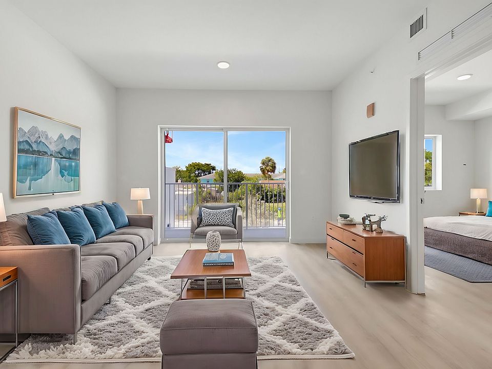 Experience modern coastal living in the heart of Lake Worth Beach. This stylish residence offers an open-concept layout with high-end finishes, abundant natural light, and a private balcony perfect for enjoying the Florida breeze. Inside, you'll find a designer kitchen with granite countertops, stainless steel appliances, and an island ideal for entertaining. Elegant hardwood flooring, spacious walk-in closets, and in-unit washer and dryer add to the comfort and convenience.