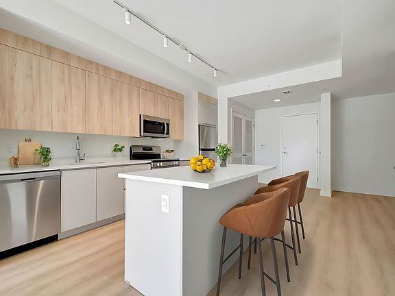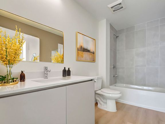 Enjoy resort-style amenities including a rooftop terrace, 24/7 state-of-the-art fitness center, yoga studio, resident lounge, business center, and children's play room. The community also offers gated access, EV charging stations, package services, and on-site management. Outdoor spaces feature a sundeck, courtyard, grilling areas, and lush landscaping.