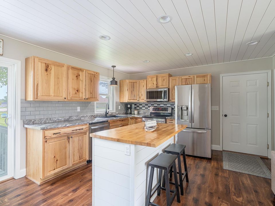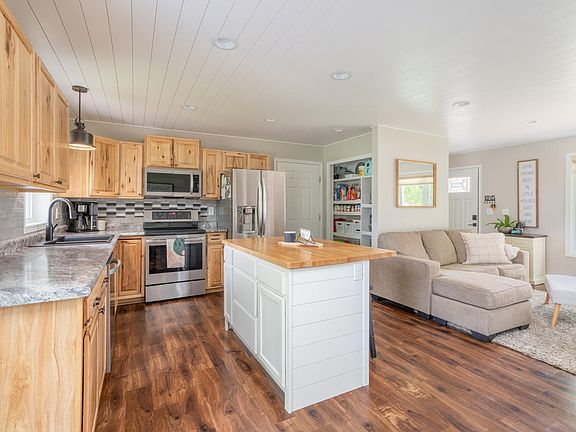 Fully remodeled 3 bedroom, 2 bath home that is tastefully decorated from top to bottom. SS appliances, hickory cabinets, new flooring, shiplap ceiling, and an open concept gives this home a great feel. Main floor features the kitchen, 2 bedrooms, 1 full bath, Living/dining rooms, and a sliding glass door that leads to the deck and backyard. Lower level includes the family room, workout area, and the Primary bedroom with private bath. The attached 2 stall garage is heated and the location is great for easy access to main roads, Valley golf course, restaurants, schools, churches and much more. Welcome home!