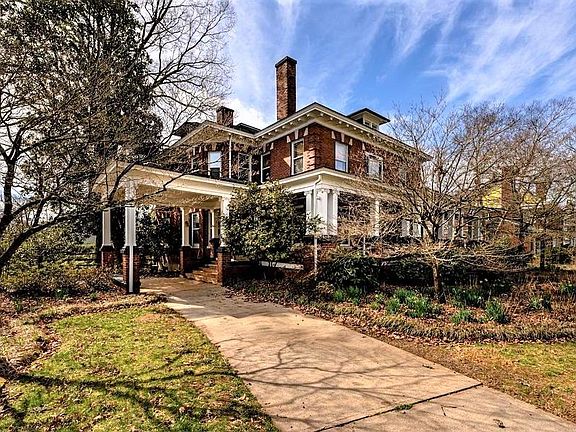 Own a piece of history with this 1913 home in the heart of NW Hickory. With endless entertaining options, you may welcome your guests into the well-appointed rooms w/high ceilings, substantial moldings, original hdwds. windows & hinged transoms thru-out. Gather on the main level in the formal LR, cozy den or music room, or invite your guests to stay the night in the main level guest suite. A kitchen w/high-end appliances & a large pantry adjoins the formal DR & leads to the large, rear sunroom. 2nd level has a primary BR w/lots of windows, expansive walk-in closet & en suite w/travertine shower & flooring. 3 add'l BRs are on this level w/a full BA. Orig hdwds, windows & high ceilings are all present here. 862 sq ft front porch for outdoor entertaining & fenced, level, backyard. There are multiple spaces inside & out to enjoy the lavish landscape & privacy. There is an outbldg, a large basement & a large attic for all your storage needs. A porte-cochere & multiple parking spaces.