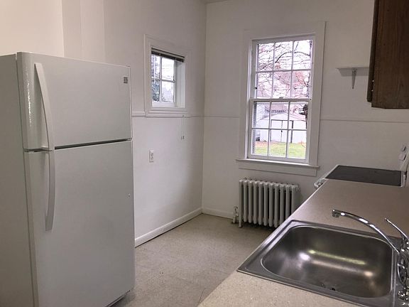 Off-street parking, new fridge, new kitchen counter, washer/dryer in unit, new paint, hardwood floors, private entrance off driveway. Front porch. Nice neighbors, quiet block. Come see! 12 month lease. Heat and hot water included.