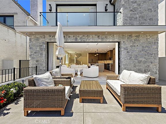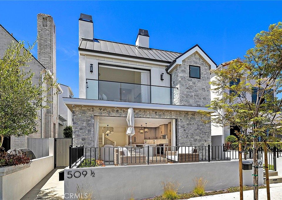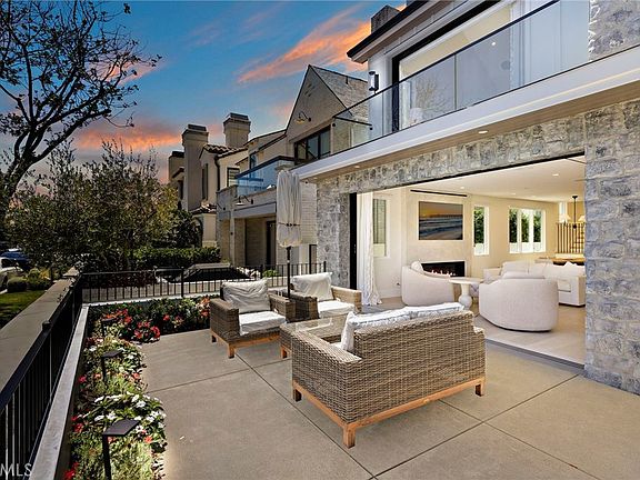 EXQUISITE HOME AVAILABLE FOR SALE, OR SHORT-TERM LEASE (3–6 MONTHS), FULLY FURNISHED AND MOVE-IN READY. Magnificent new construction home, highly upgraded and landscaped, available on perhaps the most beautiful of all Flower streets and in the best location. Walk to countless restaurants, the beach, grocery stores, beauty salons, banks, design and hardware stores and enjoy scenic walkways. For travel convenience, John Wayne Airport is just up MacArthur. Located south of Pacific Coast Highway, one often hears sea lions late at night but no sound from Pacific Coast Highway. Additionally, every surrounding home is stunning. Begonia Park - just over a block away, and Old School Park even closer. Fro m the primary bedroom balcony, there is a peekaboo view of the ocean. From the top deck, there is added quiet, privacy and night sky viewing. Enjoy the front patio as a social point throughout the day and evening or open the enormous LaCantina doors that disappear 100% into the wall both upstairs and down for a completely open feel to the home. There is a downstairs bedroom or office and a private side patio separated from the front. There are numerous upgrades the owner painstakingly added, including but not limited to a top of the line drinking water and instant boiling water system, designer installed hardwired ceiling fans, top down bottom up blinds and interlined LaLique Designer made custom drapery; two separate Central Vacuum systems - a rarity in homes and a quiet convenience - one for the garage & car and one for inside; Mount Blanc quartzite counters, island and full backsplash; Italian porcelain laundry room and floor to ceiling on the wall to the fireplace and custom installed Samsung 77” Frame television; wrought iron exterior wall and entry gate; undercabinet dimmable lighting, custom all designer lighting; entire house inside and out on dimmers. In addition, there are three thermostat zones throughout the house for individualized heating and cooling; a tankless water system; electric vehicle built in charging station; rooftop solar; 36” wide built in Sub Zero refrigerator plus freezer; commercial Wolf stove & oven. One car direct access garage, and a carport.