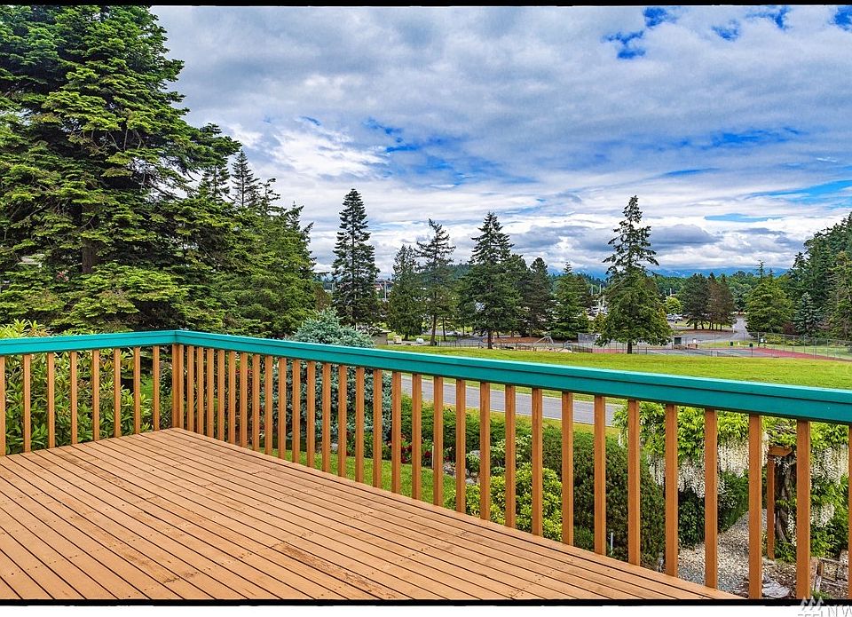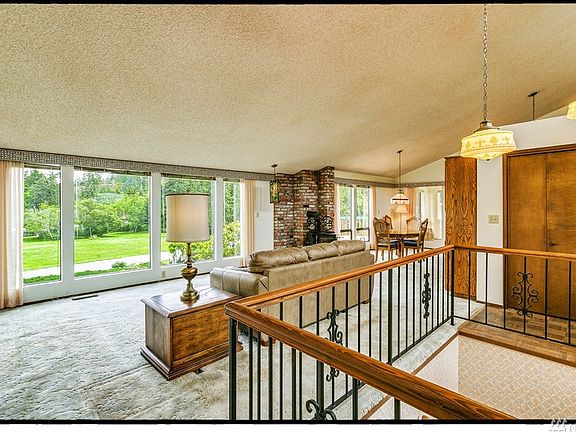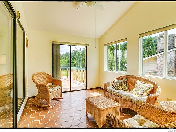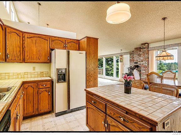 Enjoy the sun filled spacious vaulted ceiling home with a great floor plan; lots of natural light and fantastic views of Mt. Baker; the quaint village of La Conner, and the Rainbow Bridge just across the street from the swimming pool, playground, golf course, clubhouse, tennis, marina, and BBQ area. Home features something for everyone! Sun room, work shop plus a large garage Including main level living and an additional living unit on the lower daylight level complete with another kitchen.