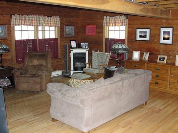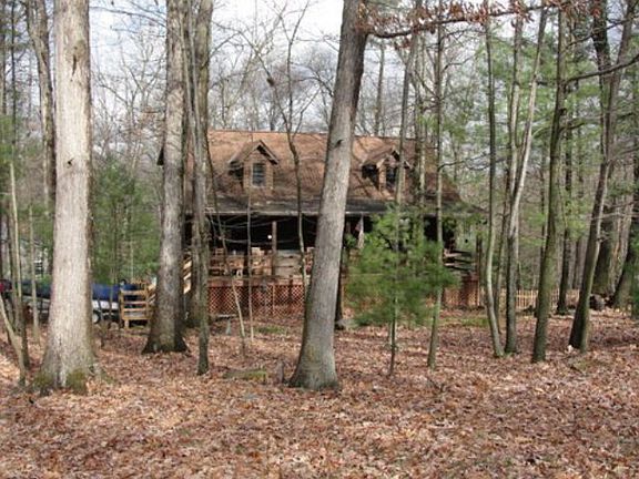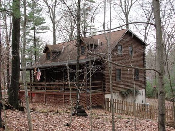 Beautiful log home on corner wooded lot features cathedral ceilings, wood beamed ceilings, hardwood floors, lg kitchen w/ lunch counter & w/i pantry. 1st fl. bedroom, bath & laundry. Lg front porch, rear deck & bird nest deck off 2nd fl bedroom. Finished lower level w/ half bath c/be 3rd bedroom. Mst suite has whirlpool tub. Sq. footage does not include finished L.L. Easy walk to lakes, lodge, pool, tennis courts & close to front gate.