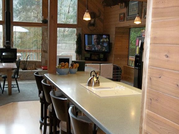 Beautiful home on the Sol Duc River. Nestled among the trees is this wonderful Northwest Contemporary home. Wood heat and electric, Has an open kitchen plan with eating area, 2 bedrooms 2 bath on the main level and a luscious master suite with bath makes up the upper level. Beautiful views of Sol Duc River right out your windows. Also includes a "Mother in law" Apt. for extra space for guests. Seller to pay Compensation tax to convert acreage from Forest mgmt. taxation to residential.