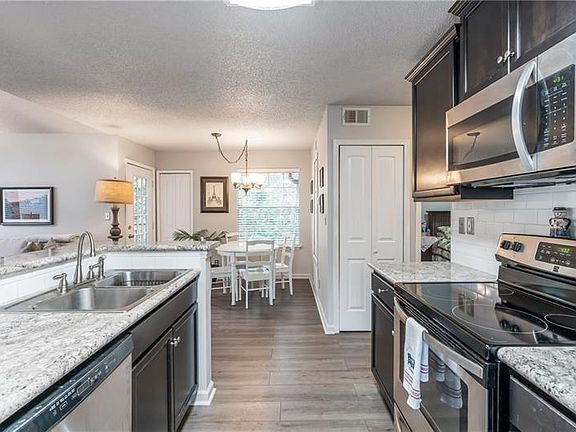 Cozy fireplaceStainless steel appliancesSeparate dining areaModern kitchenCorner unitTennis courtsDark cabinets