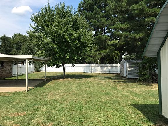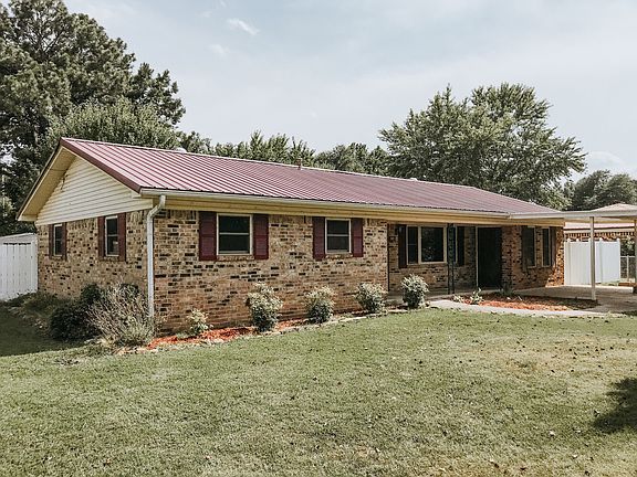 Closing costs negotiable. 1,386 sq ft brick home in an established neighborhood with metal roof on a corner lot, 3 bed 1 bath, large den and separate laundry room, 2 car carport, vinyl fence, two large storage sheds, and covered patio. All new trim and flooring and fresh paint. MOVE IN READY! No owner financing.