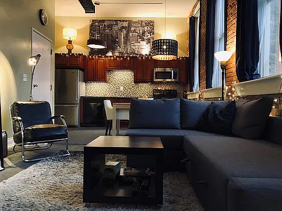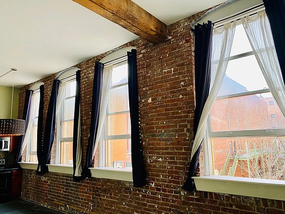 This beautifully updated condo features a picturesque view of an event courtyard across the street, with exposed brick in living room, kitchen and bedroom, 12 ft ceilings, concrete floors, exposed duct work, and beautiful arched windows!