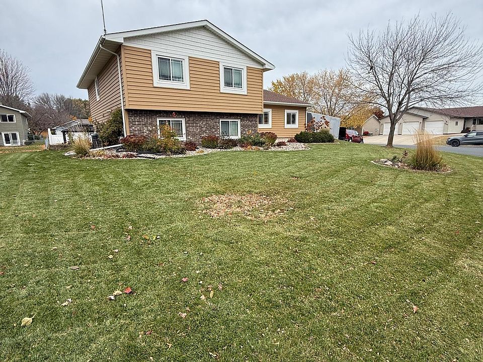 Welcome home to this move-in-ready walk-out split level, perfectly situated on a spacious corner lot. Enjoy the peace and comfort of small-town living with plenty of modern updates and thoughful features. The home boasts a large, heated, and insulated 3-car garage - ideal for vehicles, projects, or extra storage. A beautiful apple tree adds character to the yard, while the privacy fence creates the perfect setting for relaxing or entertaining outdoors. Inside, you'll find an inviting layout with 6-panel doors throughout and abundant storage space. The lower level features a cozy gas fireplace, perfect for gathering on cool evenings. The primary bedroom offers a generous walk-in closet. With a move-in-ready interior and charming curb appeal, this home has everything you've been looking for - spacious, warm, and ready to make your own!