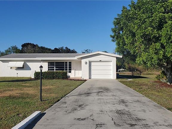 Enjoy some elbow room in this lovely home located on a spacious corner lot backing up to a canal. The Florida room is currently being used as a bedroom, but will accommodate a variety of uses, and is cooled by a window a/c unit purchased in 2018. The garage has three sets of wall-mounted shelving, a freezer, and the washer and dryer are located there. The washer was purchased earlier this year, and the water heater was purchased in 2015. There's plenty of room in the back yard for a pool, or to just enjoy the peaceful setting while viewing the great Florida sunsets. Come see this one soon!