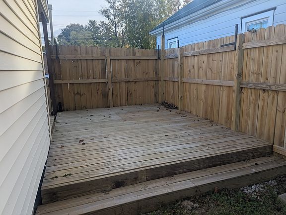 The backyard includes a deck for relaxing, a shed for extra storage, and it's fully fenced in.