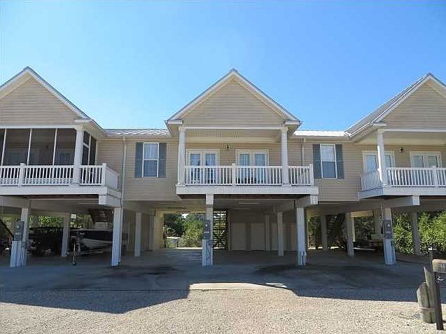 This townhouse is located in the Sands of Carrabelle, a popular community which includes a community pool.Large open 3BR/2BA 1500sf, spacious great room and adjoining kitchen with a breakfast bar. Large master bedroom with French doors opening to a covered porch, master bath with double vanity and large walk-in closet.The two additional bedrooms have plenty of closet space. Townhome is on pilings with space underneath that provides covered parking for your cars and boat.This unit being sold unfurnished, but includes all appliances and a full size washer and dryer.The living areas and bathrooms have vinyl flooring and the bedrooms have carpet.An added feature of this unit is that it has an enclosed 10x15 storage area for all your fishing tackle.This unit has a front and rear porch.This unit has had little use and in excellent condition.