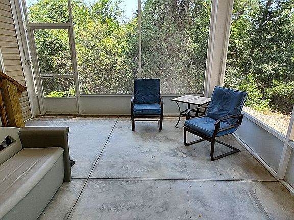 Quiet, end unit in The Sands of Carrabelle, centrally located two blocks north of Highway 98. Ground floor screened in porch overlooking a green zone. Oversized storage unit with double doors that will accommodate a golf car or UTV. Single stairway going up to living area with an Acorn Stair Lift. Note "furnished" means appliances only.