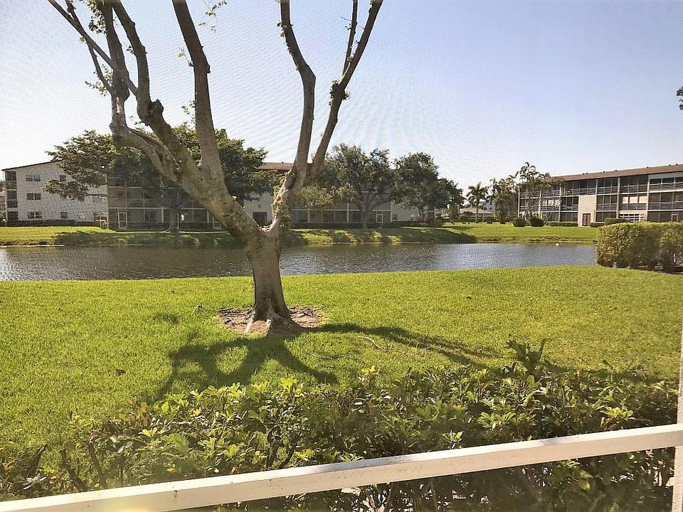 Sellers Loss is your gain..........This 1st floor corner 2 bedroom 1 1/2 bath condo offers the same neutral tile installed on diagonal throughout and upgraded baths large screened in patio situated on beautiful wide waterway with lots of greenery and ready for new owner. Enjoy the quiet peaceful views and the active adult lifestyle that Century Village Boca offers for full and part time residents.