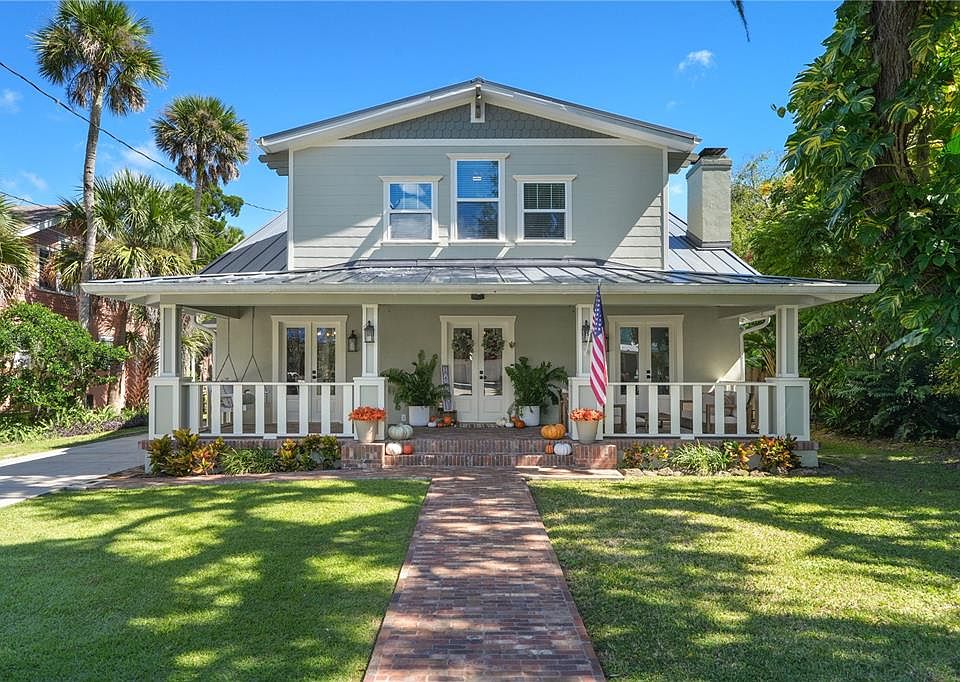 Welcome to Florida living at its finest! Watch the video for the full effect. This beautifully crafted 4-bedroom, 3-bathroom home sits on a spacious lot and offers exceptional indoor and outdoor living. Thoughtfully designed with attention to detail, you'll find elegant coffered ceilings, warm wood floors, and an inviting front porch that welcomes you home. Main home is 2232 sq ft and separate studio is 176 sq ft. Inside, the home boasts large, light-filled bedrooms — two of which feature private en-suite bathrooms — providing comfort and privacy for family and guests alike. The open-concept living areas flow seamlessly into a gourmet kitchen and out to the heart of the home: a sprawling screened-in lanai complete with an outdoor kitchen, perfect for entertaining or relaxing year-round. Step outside to your private oasis with an amazing pool surrounded by lush landscaping. A separate studio offers endless possibilities as a guest suite, home office, gym, or creative space. Located in a highly walkable and friendly neighborhood, this property offers the ideal blend of luxury, comfort, and convenience. Don't miss your chance to own this one-of-a-kind home that truly captures the essence of Florida lifestyle. Metal roof 2022.