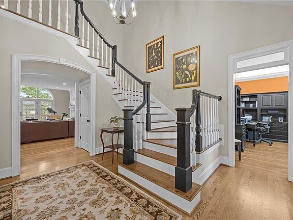 This custom-built, beautifully maintained brick home offers 3,672 sq. ft. of elegant living space. Updates (2019) include refinished hardwoods, remodeled primary bath, interior paint, Berber carpet, & plantation shutters. The primary suite is a retreat with a ceramic-tiled shower, glass enclosure, soaking tub, double quartz vanity with full-height mirrors, and spacious walk-in closet. The kitchen features granite countertops, under-cabinet lighting, a sit-down peninsula, breakfast area, and wet/coffee bar between the kitchen and formal dining room. Main floor includes a dedicated office and large living room with custom built-ins, gas-log fireplace, and French doors to a brick patio. Upstairs offers three bedrooms, two full baths with tiled showers and granite tops, a bonus area, walk-in attic storage, and cedar closet. Exterior highlights include copper front gutters, a backyard storage building, two-car garage with Tesla charger, and new vapor barrier and dehumidifier in crawl space.