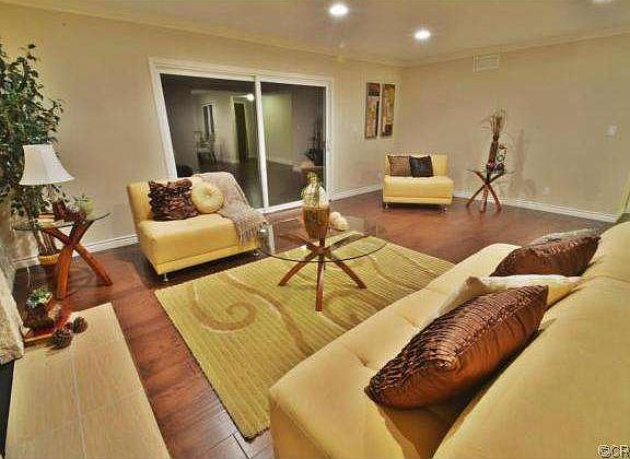 Nestled in one of Brea's most prestigious neighborhoods, this single story FULLY remodeled turn-key home affords all the luxuries you can imagine. The spacious open concept living space features real hardwood floors, recessed lighting, crown molding, and a DRAMATIC natural stone fireplace. The gourmet kitchen features upgraded stainless steel appliances, stylish quartz counter-tops, travertine & glass mosaic back-splash and rich wood cabinets. The three spa-like bathrooms offer custom tile work with glass mosaic insets, designer fixtures, Toto toilets and all wood vanities with quartz tops. The main wing features 4 roomy bedrooms with plush new carpeting and updated closets to maximize storage. The 5th private bedroom/office offers a half bath and access to the indoor laundry facilities. The landscaped front and back yard features a park-like setting and includes fresh new grass. Relax on your spacious brick patio or go for a dip in the private POOL. There's even a new 1700 sqft concrete driveway ready to accommodate RV enthusiasts! Other features throughout include: ALL NEW double-paned windows and doors, custom interior and exterior paint, upgraded baseboards, designer lighting elements and newer A/C & furnace. In Brea's AWARD winning school district.