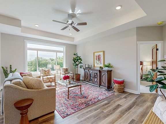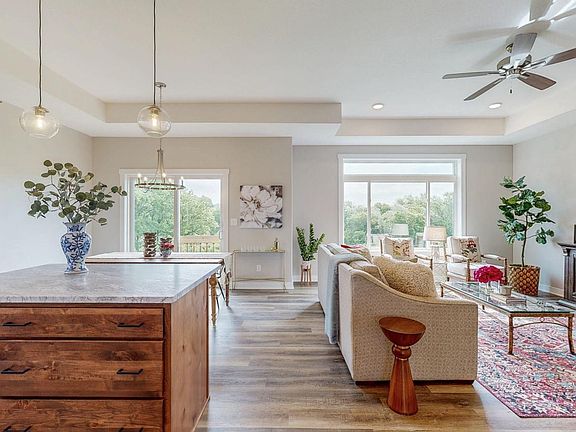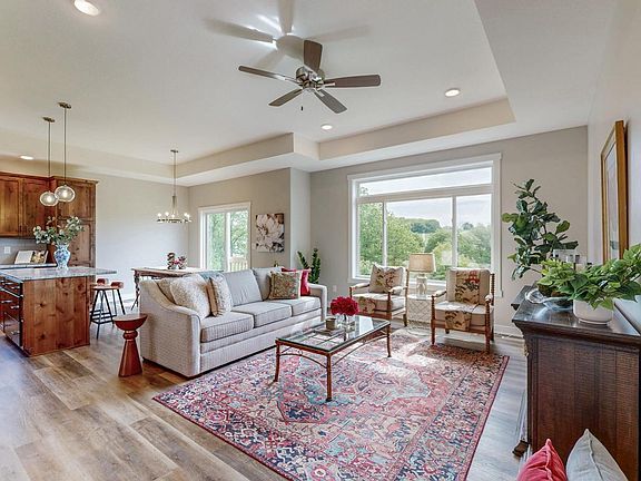 New construction walkout rambler situated on a gorgeous lot next to the Zumbrota Golf Club. The main floor is an open concept with a spectacular kitchen that includes granite countertops & center island, stainless steel appliances, and tiled backsplash. Kitchen, living room, and dining room include tray ceilings. The primary bedroom has a tray ceiling plus a massive walk-in closet that has a passthrough door into the laundry room. The private primary bathroom has granite counters with dual vanity & a spacious walk-in tiled shower. There is a second bedroom as well as a full bathroom on the main level. The walkout basement is unfinished with the potential for an additional two bedrooms, bathroom, and family room. It can be completed prior to closing for an additional price. The garage is an oversized 855 sq ft with plenty of depth for a boat or large truck. Also included is sod installation, a passive radon system, high efficiency furnace & A/C, air exchange system & builder warranty.
