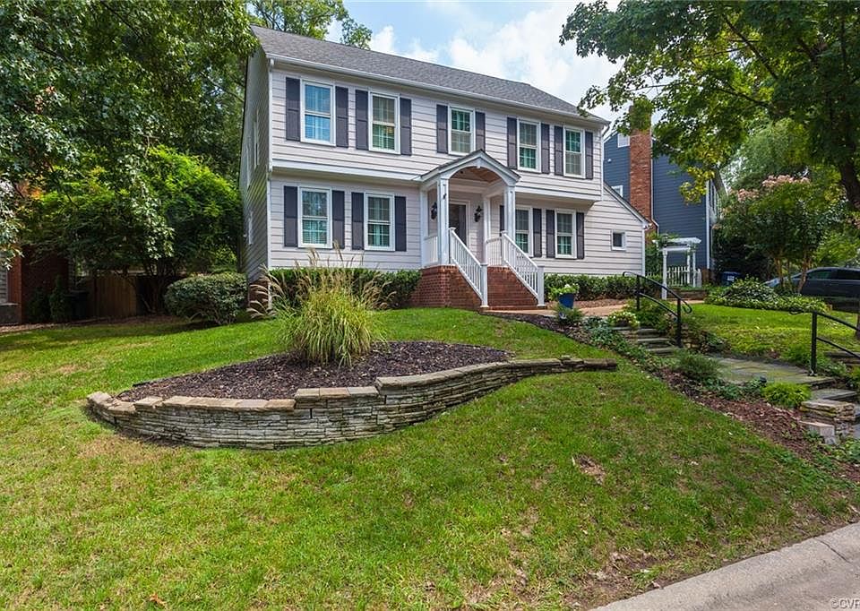 The wow factor is found in this wonderful 4 BR/2.5 BA (plus office or 5th bedroom) home in Tuckahoe Elem. area! Nothing cookie cutter here with a fantastic open floor plan and bright, clean, open interior with a modern flair! Living room with columns, built-ins and plantation shutters centers on a beautiful brick (gas) fireplace; French doors lead to the bright Family room w/ additional French doors to the rear patio w/ English garden and charming waterfall feature! What a great space to unwind! Formal dining room has plantation shutters, chair rail molding and chandelier; the large (eat- in) kitchen includes granite countertops, skylights, picture windows, s. s. appliances, gas range, goose neck faucet and pantry. Upstairs are 4 bedrooms (including the awesome master suite w/ skylights and balcony--again, nothing plain vanilla here!) and an office (or possible 5th bedroom). Plantation shutters, fresh paint and lovely wood floors throughout this stunning home! Fenced rear yard. Newer windows 2013, newer HVAC and Hot water in 2015..... Close to great schools, shopping, dining and amenities.