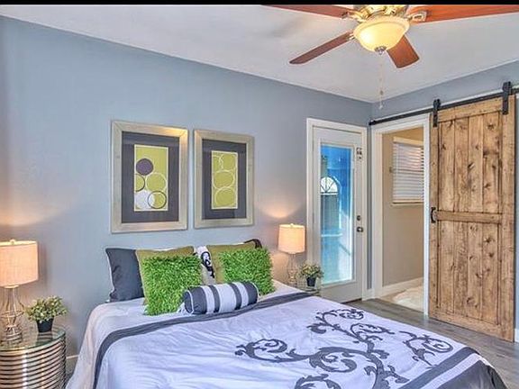 Charming 3bed/2bath remodel by St. Elmo District! Nestled on a corner lot of the cul-de-sac, this home boasts many unique bonus features including:built in desk, custom closet doors, soft close kitchen cabinets, LED lighting, a window shelf, 3x backyard access, & an indoor/outdoor room not included in the sq. ft.Open & spacious living/dining area.Kitchen includes new refrigerator, farmhouse sink & island breakfast bar. Large backyard w/ covered patio, 2 storage sheds, & mature trees. So much potential!