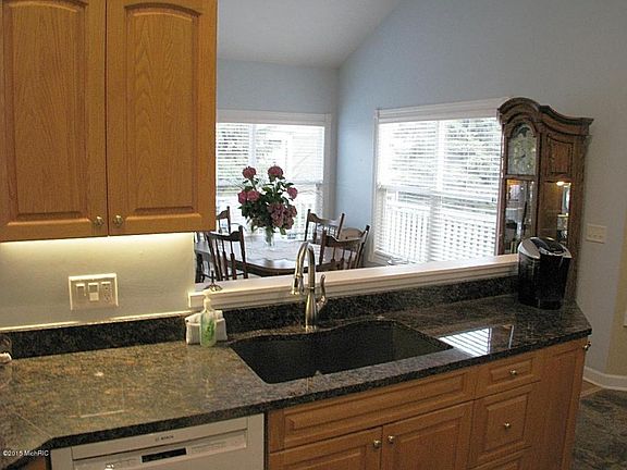 Timber Ridge Estates, Holland, Free-standing single family Condo Assoc. Very low monthly HOA fee of $150 that covers your trash/recycling collection, lawn & landscape maintenance, sprinkling, fertilizing & mowing, snow removal right to the front door, all road and driveway maintenance, and security lighting. Just turn the key & come & go! This home truly has it all. Recent Extensive updating makes this home like new 3-4 Bd. Beautiful cathedral ceilings & walls of windows create a bright, cheer ful feeling. The kitchen is fit for a chef w/some newer appliances & granite counters. Main floor laundry w/newer washer & dryer. Lovely Master bedroom suite w/2 closets. Formal dining opens to living room w/gas log fireplace. Spacious wrap around trex deck. Large finished lwr lvl w/daylight windows