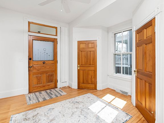 Nestled in walkable North Downtown, this renovated historic gem boasts of charm and modern amenities. Situated on an elevated, professionally landscaped lot, the allure of this property is evident from the moment you step onto the inviting front porch. As you enter the foyer, you're greeted by the grandeur of nine and a half-foot ceilings, original hardwood floors, and the abundant natural light streaming through large windows. This meticulously crafted 3-bedroom residence offers a rare and luxurious first-floor owner's suite, complete with a generously-sized walk-in closet, a rejuvenating walk-in shower, and the cozy ambiance of a gas fireplace. The main living space boasts a desirable open floor plan and a newly renovated kitchen, providing the perfect setting for both intimate gatherings and lively entertaining. The converted porch offers a versatile flex space for an office, play nook, or hobby corner. Additionally, ample walk-in attic storage provides convenience and practicality, ensuring that every inch of space is utilized efficiently. Ample off street parking with Tesla charger in place. *R-B zoning. The unseen systems have not been forgotten with brand new HVAC (2023), water heater (2019), boiler (2016) and newer roof.