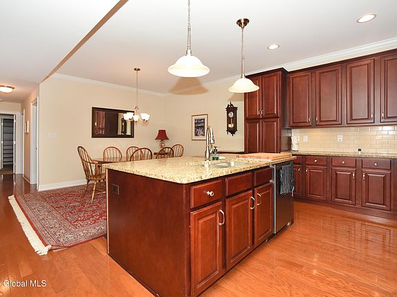 Welcome to this stunning 2-bedroom, 2-bathroom first-floor condo located in the highly desirable Country Gardens Community in the Town of Niskayuna, within the South Colonie School District. This beautifully maintained home offers a spacious and open floor plan featuring gleaming hardwood floors, an inviting gas fireplace, and an updated kitchen perfect for everyday living and entertaining. The expansive primary suite includes a large walk-in closet with custom built-ins. Enjoy the convenience of a generously sized laundry room and the ease of one-level living.