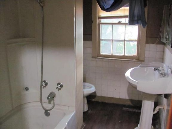 Located 1 block from the edge of town. Hardwood floors. Laundry room off Kitchen, Formal dining room. Sunroom is a great place for plants. Garage with workshop and electric door opener. Back yard has a chain link fence all around the back of property plus a Doggie door on the back door to back fenced yard. Kids Play set stays. Great place to raise kids. Attic fan does not work. Water is turned off and pipes are winterized.