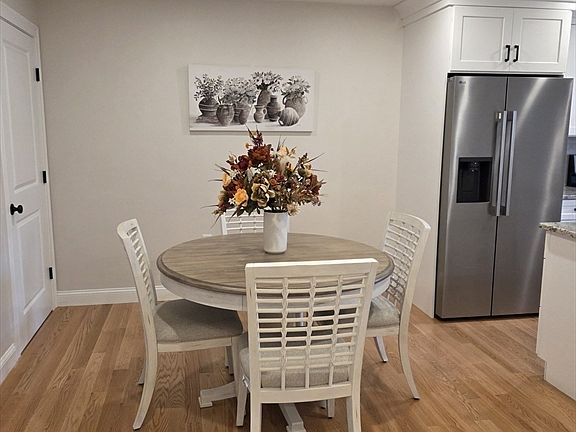 Fireplaced family roomPaver patioAttached garageEating areaGranite countertopsRecessed lightingHardwood flooring