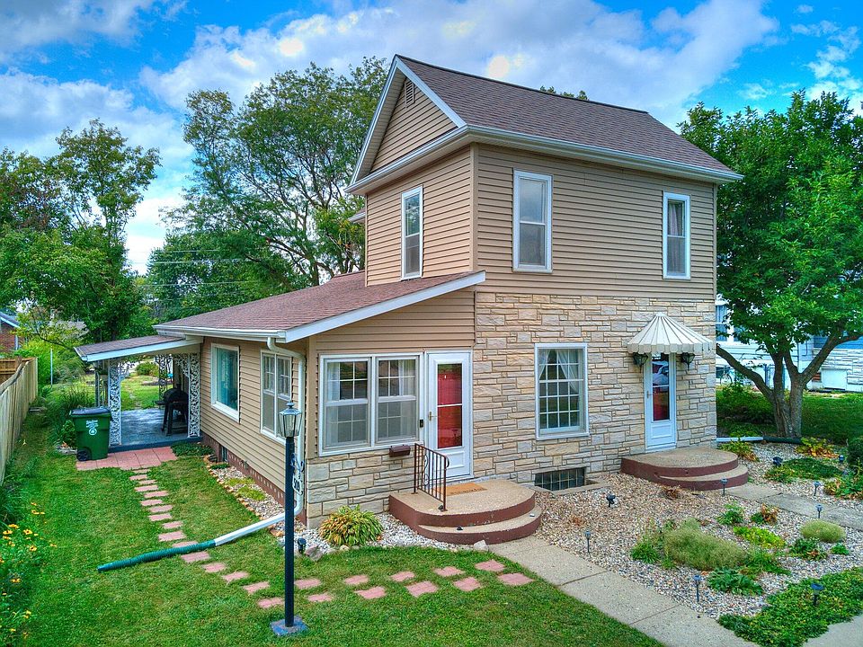 Come check out this affordable, charming, solid, energy-efficient well-kept two-story home. It features four bedrooms and two baths and is conveniently close to Boone High School with easy access to Mamie Eisenhower Avenue. This well-laid-out home features a contemporary feel. The main floor features a large front foyer, a nice dining area, a convenient kitchen with appliances, tucked away mainfloor laundry and mudroom with access to the covered back patio, a good-sized main floor bedroom, a spacious living room, and a full bath. The upper level features three bedrooms. The lower-level basement area is clean and dry, fully waterproofed in 2021. It features a new 3/4 bath, a family room area, and storage space. Outside you'll enjoy a spacious private backyard relaxing on the covered patio. There is a 24x30 two-car garage with easy alley access. The home and garage have maintenance-free exterior vinyl siding. The furnace and AC systems are seven years old. This home is ideal for anyone looking for something comfortable and affordable. Come see this home today. Schedule your tour today, as this one won't last long.