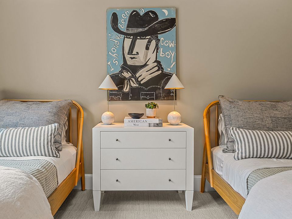 A game table or study nook at the top of the stairs provides treetop views, while an additional balcony offers views of the surroundings. Two spacious bedrooms share a Jack and Jill bathroom and feature natural light, high ceilings, large walk-in closets, and updated wool carpeting.