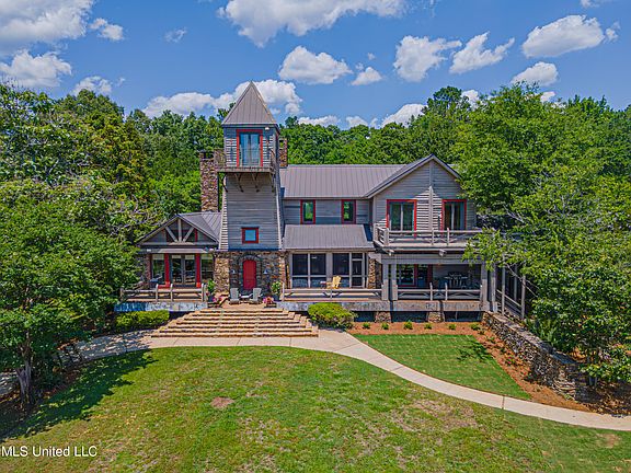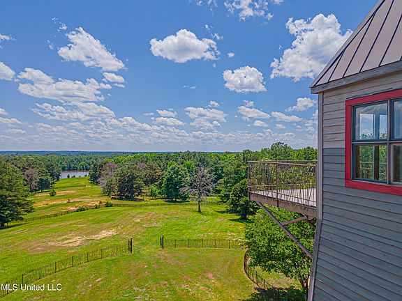 Built atop one of the highest points of elevation in Madison County, MS, this spectacular home on 23.18+- secluded acres is nothing short of an architectual masterpiece. Boasting one of the most impressive and secluded views in the county, it is hard to believe that this one of a kind property sits only a few miles from the amenities offered in the City of Madison. This 5656 sq ft home includes 4 bedrooms, 4.5 bathrooms, a 3 car garage, & multiple special purpose rooms. The master suite and guest bedroom are located downstairs on seperate sides of the house, easily flowing into the centralized main living areas, dining areas, and kitchen. The second story includes two private bedrooms/baths, both of which enjoy hallway access to the bonus room and outdoor balcony. The third story observation tower offers miles of views from an impressive height, along with another bonus room for storage or entertainment. The expansive backporch offers an incredible entertainment area that is easily accesible from multiple locations inside the home, including the master bedroom. The stone stairs lead one from the elevated back porch towards the impressive pool, cabana, hot tub, and broad pool deck area. Offering plenty of sunlight and shade, the pool and cabana is a top tier outdoor entertainment feature for friends, family, and all. The 23.18+- Acres consists of a majority of mature hardwood and pine timber that provide privacy and seclusion from the time one enters the gated driveway. Located in one of the most sought after areas in Madison County, this is an opportunity to enjoy the pleasures of privacy and elegance while remaining only moments from your day to day life in town.
