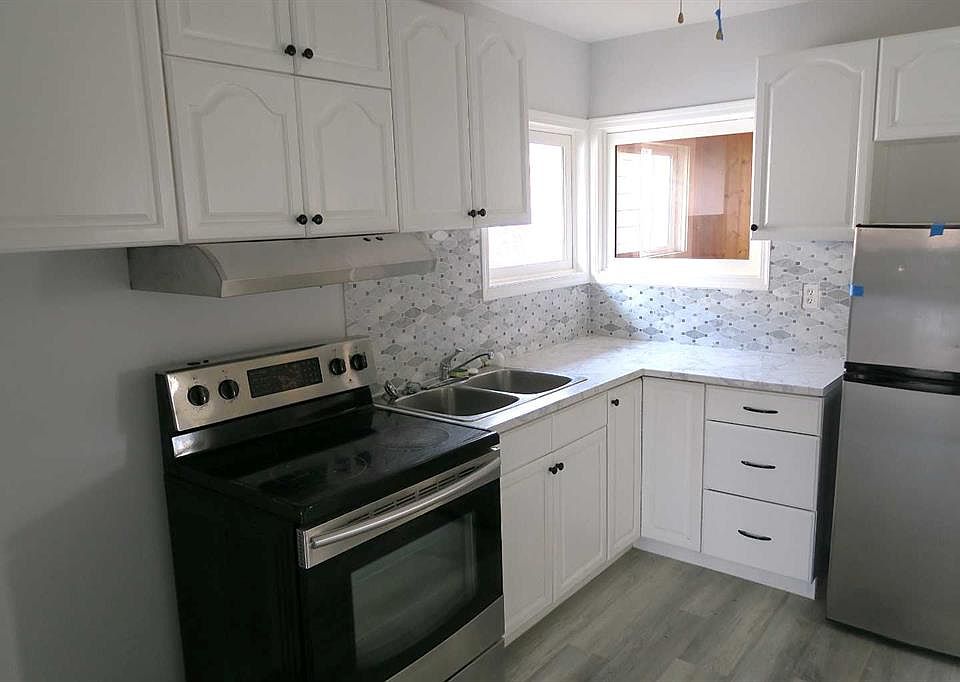 Beautifully Renovated.OVERSIZE ATTACHED GARAGE. Nice kitchen accented with STAINLESS STEEL APPLIANCES, BIG renovated bathroom. Large Separate laundry/Storage room. Large livingroom & Diningroom. Enclosed area between house and garage with direct access to house and garage and backyard. BIG oversized attached garage with parking pad behind for two cars with rear lane access. One block walk to River.