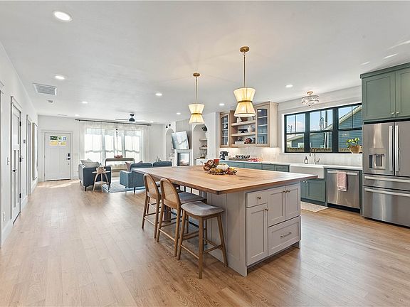 Every system and surface is brand new — HVAC, plumbing, electrical, insulation, roof, framing, and windows giving you all the peace of mind of new construction. Inside, you’ll find custom woodwork and finishes throughout: a 6' x 8' white oak island crafted from the home’s original 1901 joists, a custom cherry slab vanity, arched built-ins, quartz countertops, and designer tilework.