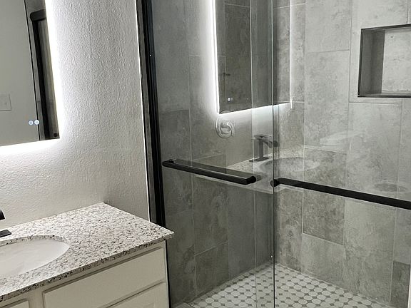 Both bathrooms have been completely redone with backlit LED mirrors, custom tile work, and walk-in showers. Each bedroom offers comfortable space with updated lighting and fresh flooring, giving every room a bright and inviting feel.