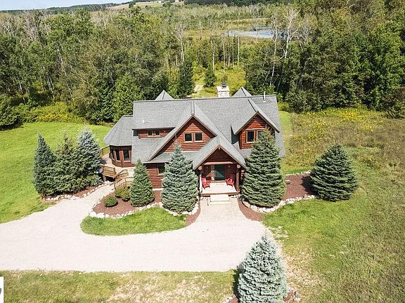 Welcome to your dream retreat nestled on 20 picturesque acres just outside of Boyne City with BOYNE CITY SCHOOLS! This custom-built log home offers the perfect combination of luxury, privacy, and natural beauty. This stunning home is a true masterpiece, featuring4 spacious bedrooms and 4.5 bathrooms, with rustic charm blended seamlessly with modern amenities. Boasting handcrafted woodwork, vaulted ceilings, and expansive windows that bring the outdoors in, every corner of this home reflects quality craftsmanship and attention to detail. The property features a tranquil private lake – ideal for fishing, kayaking, or simply enjoying the serene landscape. Perfect place for duck hunting, bow hunting and bird watching. The expansive outdoor deck and enclosed gazebo are perfect for entertaining or relaxing. Inside, the fully equipped kitchen boasts modern appliances and granite countertops, while a cozy stone fireplace adds warmth and charm to the living spaces. The walk-out basement provides another stone fireplace, living area, bedroom and full bath. The detached 3 car garage offers tons of storage as well at the opportunity to convert the upstairs into a man cave, game room or guest house! (wired and ready for finishing) Whether you’re looking for a peaceful primary residence, a vacation getaway, or a lucrative investment property, this log home offers the best of both worlds. This remarkable home is less than one mile to Sommerset Pointe Marina on Lake Charlevoix and less than 10 miles to Boyne Mountain Resort, offering year-round recreation including skiing, golf, and outdoor activities. With a proven track record as a successful short-term rental, this property also represents an excellent investment opportunity. Properties like this are hard to find! Don't miss your chance to own this exquisite retreat!