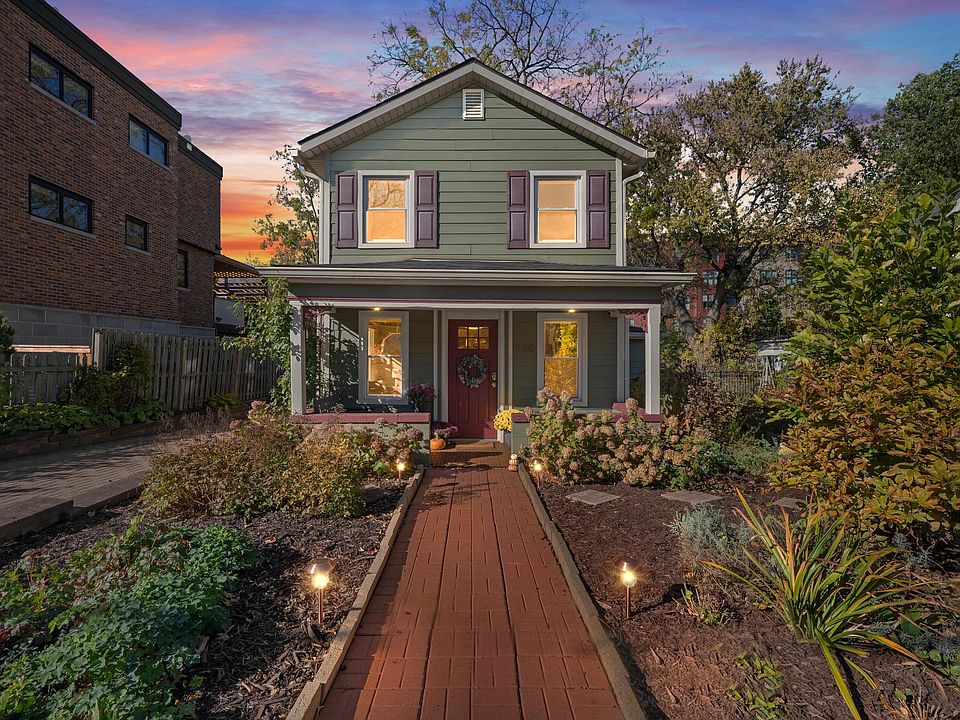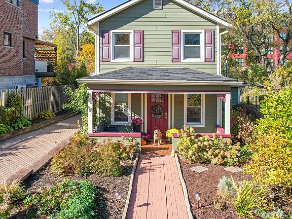 Nestled between Water Hill & Kerrytown, this 2 story home has 3 bedrooms, 2 full baths, the character of a historic home, & many modern updates & conveniences. 1314 sq ft with open floor plan, living room w/cherry floors, fireplace & eat-in dining space. Bright kitchen with plenty of granite counter space & cabinets for storage. Bedroom & full bath located on entry level. Upstairs is the primary bedroom with vaulted ceilings, a sliding glass door to private balcony with access to deck and backyard below via spiral staircase. Rare second floor laundry. Nice large lot with a fenced in backyard and deck plus plenty of outdoor space. Entertain fireside! This River Safe Home has 7kW solar panels, newer: siding, windows, sewer and water lines. Detached 1.5 car garage wired for EV with room for bikes, kayaks or storage. Located 1 block from all that is special about Ann Arbor with a Walk Score of 97, near Kerrytown, the Farmer's Market, B2B Trail & the vibrant pulse of downtown. HERD Score 6