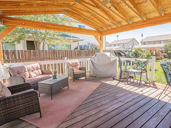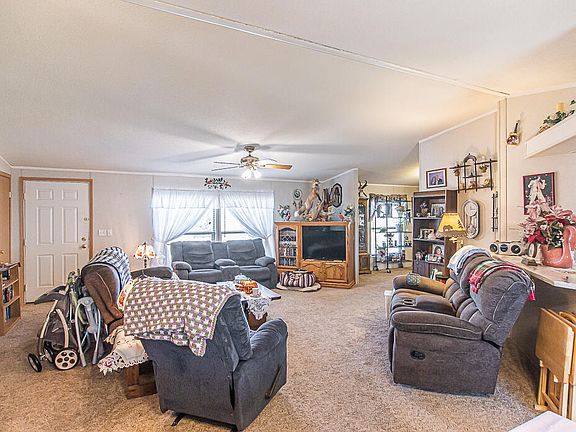 Remarks: Welcome to this spacious home with 2000+ sq. ft. of living space. The large kitchen includes 2 fridges, an island, pantry, plus a breakfast nook with lovely french doors to the covered patio for easy al fresco dining. In additional to the 3 roomy bedrooms, you'll find 2 baths, plus a dining room and a sitting area/den/flex room. The primary suite offers a walk in closet, double shower & garden tub for relaxing. Many upgrades throughout including new metal roof in 2019, wooden blinds, carpet & tile flooring, acrylic countertops, and New A/C unit. Enjoy your outdoor patio for entertaining or relaxing with mature landscaping surrounding. The fully-fenced backyard with dog door, underground sprinklers, and 2 storage sheds complete this home!